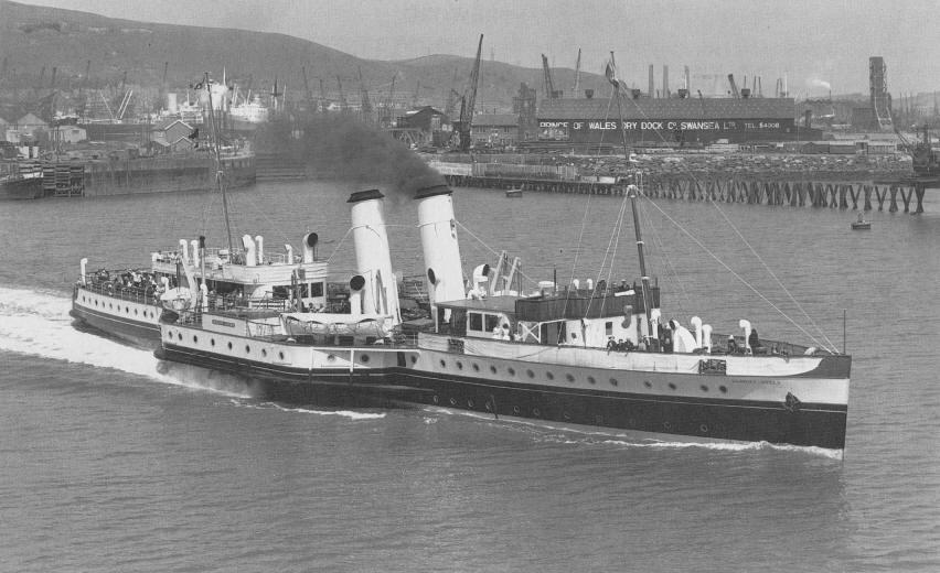 During almost a century of operating in the Bristol Channel and on the south coast of England P & A Campbell used more than twenty different ships, and almost half of these worked out of Swansea at some time or another. Up to the First World War, most passenger sailings between Swansea and other ports in the Bristol Channel had been undertaken by Pockett’s Bristol Channel Steam Packet Company, but Pockett’s last remaining paddle steamer, the ‘Brighton’, was requisitioned for war service in 1915 and never returned to Swansea.