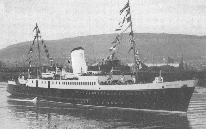 Campbell’s steam turbine twin screw ship ‘Empress Queen’ also worked in the Bristol Channel after the war, sailing out of Swansea on many occasions. Built by the Ailsa Shipbuilding Company in 1939, she was requisitioned for war service as HMS ‘Queen Eagle’. In 1955, the ‘Empress Queen’ was sold to a Greek shipping company and renamed ‘Phillipos’. After many years of cruising in the Mediterranean and the Black Sea, she was destroyed by fire in 1972.