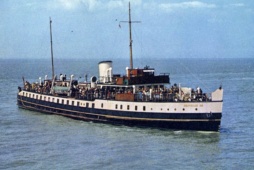 Campbell’s paddle steamer ‘Britannia’ often worked out of Swansea in the early to mid 1950’s but she was, by then, nearing the end of her useful life. Built in Ayr by S McKnight & Co. in 1896, she had been requisitioned for war service in both World Wars, firstly as HMS ‘Briton’ and then as HMS ‘Skiddaw’. Long considered the flagship of the White Funnel fleet, the ‘Britannia’ had spent most of her working life on the Bristol to Ilfracombe run. After the war she continued on various Bristol Channel routes until being taken out of service in 1956. She was scrapped at Newport that same year.