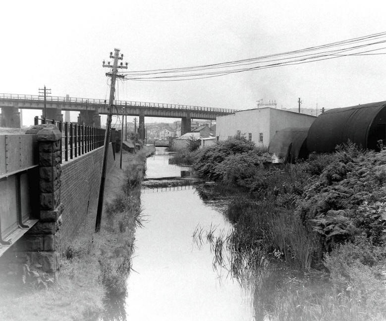 The canal at Landore going under the viaduct towards Swansea