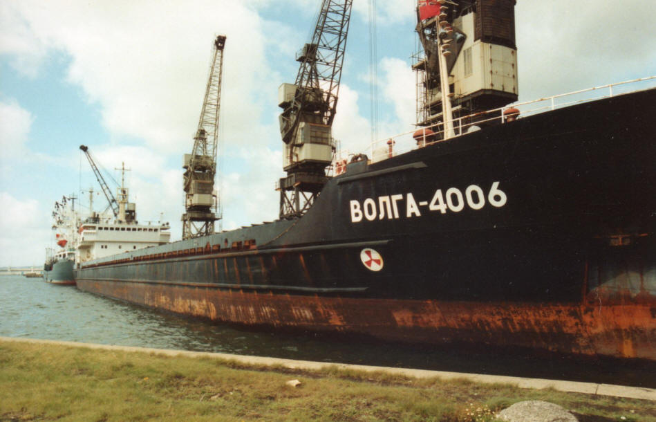 of the Volga 4006 discharging coal at No. 4 Quay (c.1990)