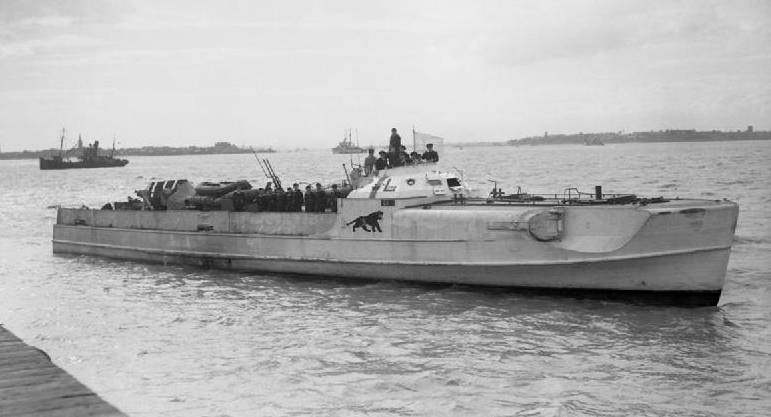The German Schnellboot ("E-boat") S 204 flying a white flag of surrender at the coastal forces base HMS Beehive, Felixstowe, Suffolk (UK), on 13 May 1945. The two German E-Boats S 204 and S 205 from the 4th Schnellboot-Flotilla were escorted in by ten British MTBs. On board one of S 205 was Rear Admiral Erich Breuning, who had been in charge of E-Boat operations and who signed the instrument of surrender. Note the black panther painted on the side of S 204 which had on board KKpt Kurt Fimmen (CO 4th Schnellboot-Flotilla) and KptLt Bernd Rebensburg (Ia Op/Operations